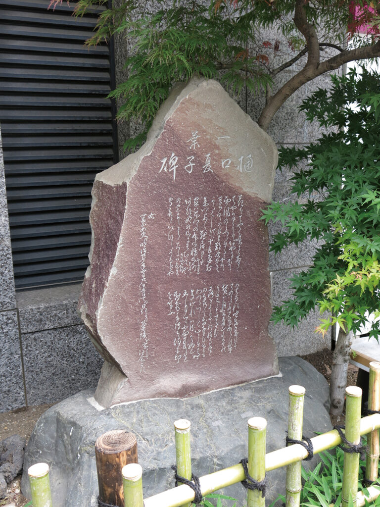 この地で『たけくらべ』などの作品を生み出しました。現在は、平塚らいてうの筆による記念碑が建っています。
