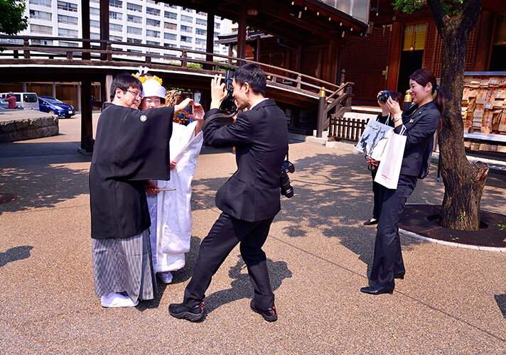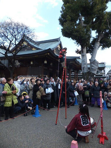 「笑いを誘う境内」