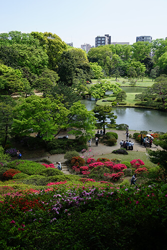 「雨に煙る六義園」