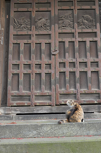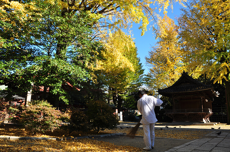 「朝のお勤め」(根津神社)